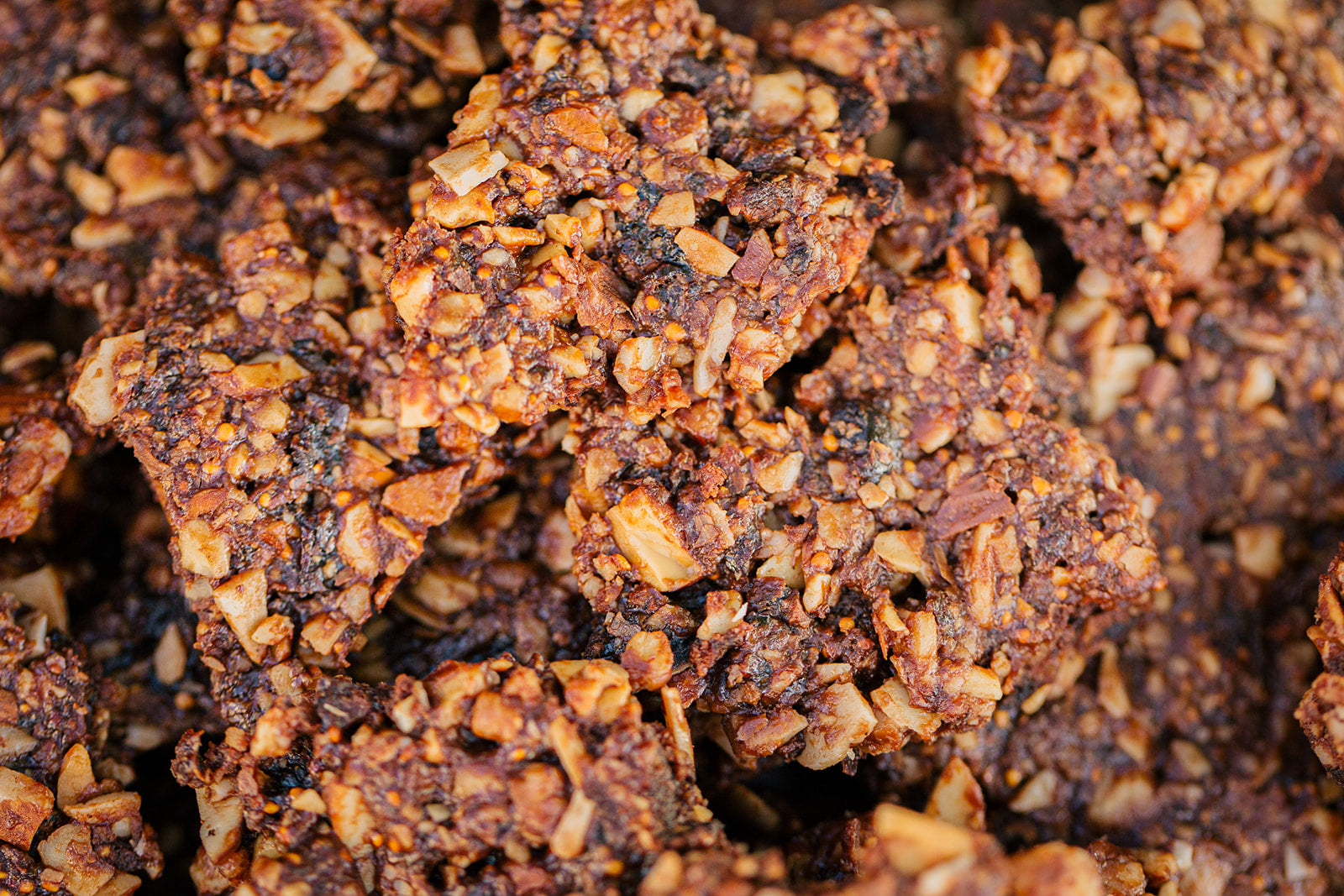 This dark chocolate orange granola is an everyday indulgence. It's a paleo granola, meaning it is made with all grain-free and refined-sugar-free ingredients. It is perfect for eating straight out of the bag! Or enjoy it in a bowl with your favorite milk! Holiday JOY Granola's main ingredients are almonds, pecans, dried figs, organic fair-trade cocoa powder, orange zest, and it is sweetened only with honey and a bit of date syrup!